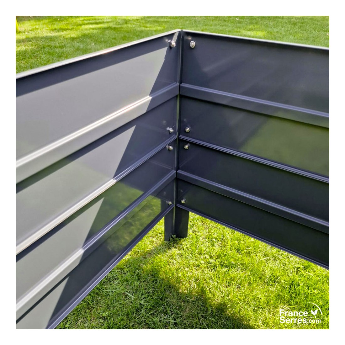 Sa structure en acier robuste et sa finition gris anthracite s’intègrent harmonieusement dans tous les styles de jardin.