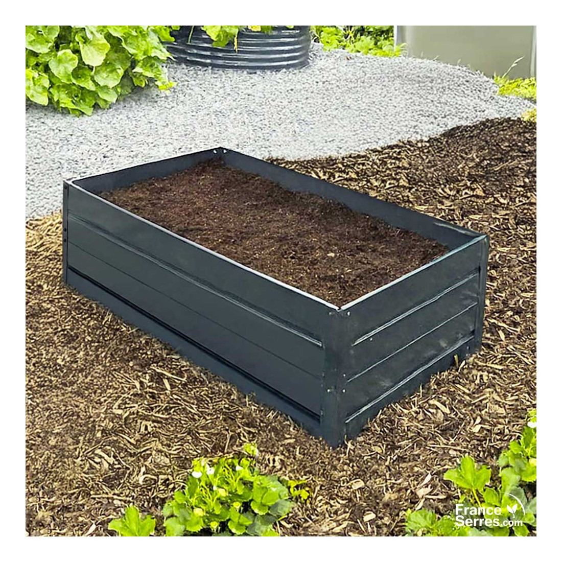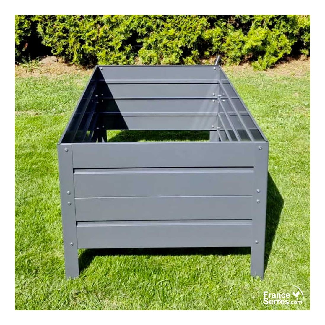 Organisez et embellissez votre jardin ou l’intérieur de votre serre avec ce bac de culture en métal, conçu en acier peint gris anthracite.